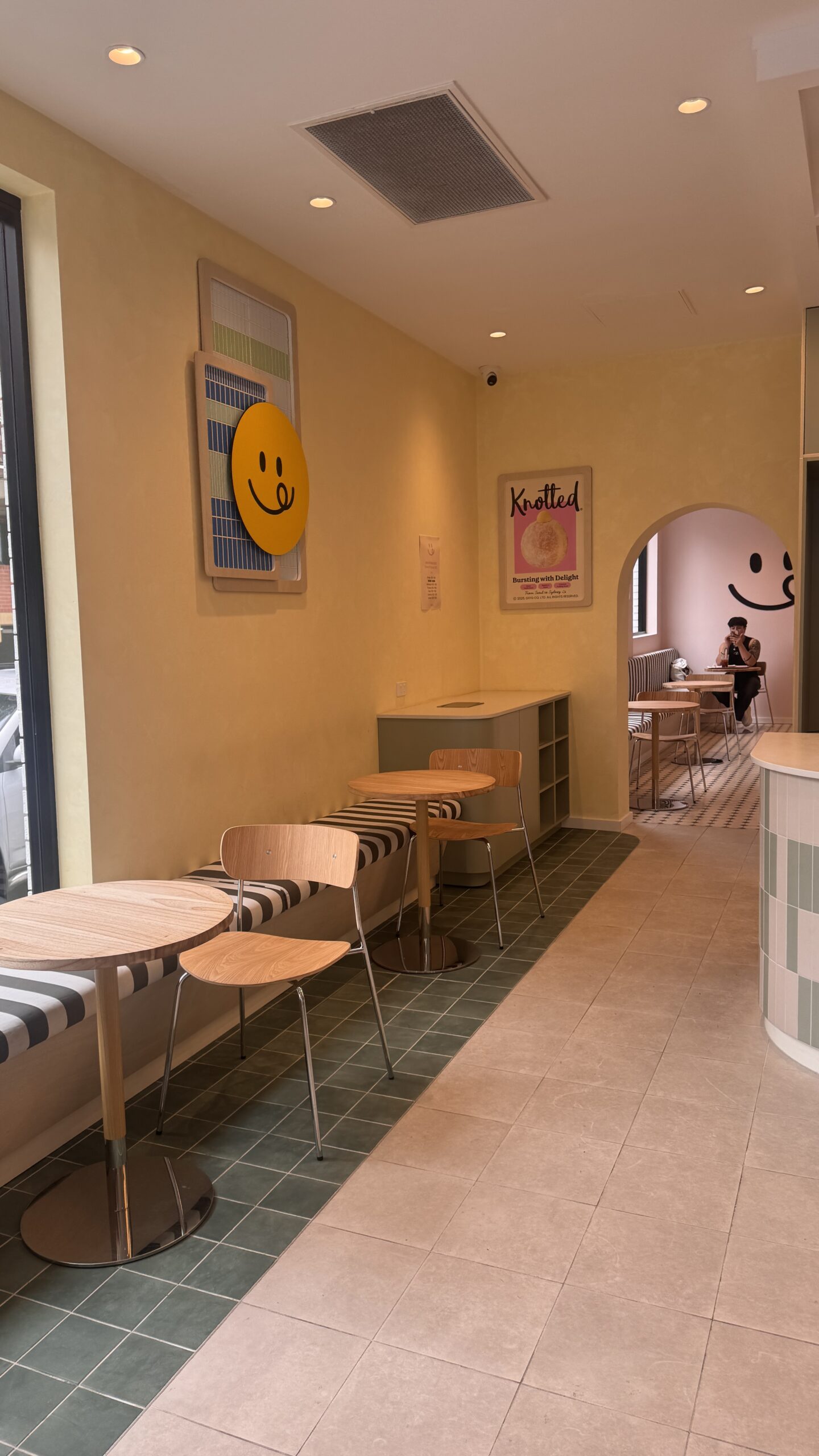 Knotted Donut is hard to miss — the cheerful storefront almost pulls you in before you even realize it.